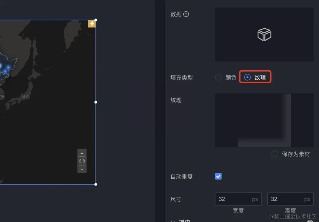 之前基础平面地图中的「多边形子组件」仅支持颜色填充,现在优化填充类型,新增了「纹理填充」,支持将纹理图案应用到多边形表面,可以创造出独特而丰富的视觉效果。除此之外,它还可以提供更好的视觉指引和用户体验,通过这项功能,用户可以更加清晰地传达出不同区域的功能或含义。