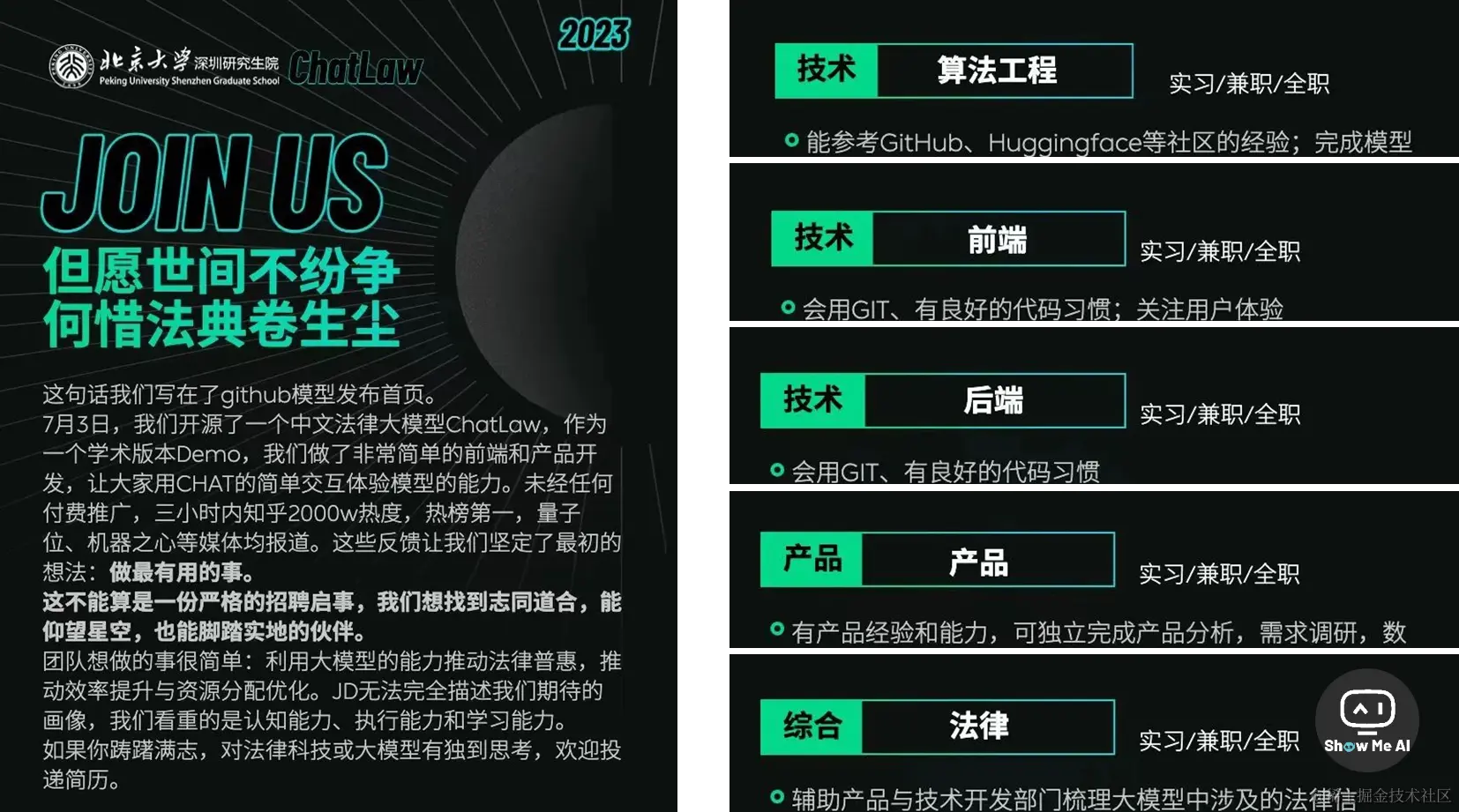 🤖 ChatLaw 团队开放多岗位招聘,实习 / 兼职 / 全职工作机会都有