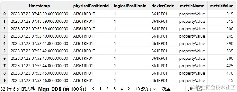 - 点击时间戳节点,触发流程启动。随后可在 DolphinDB 数据库中查看经过清洗之后的数据。