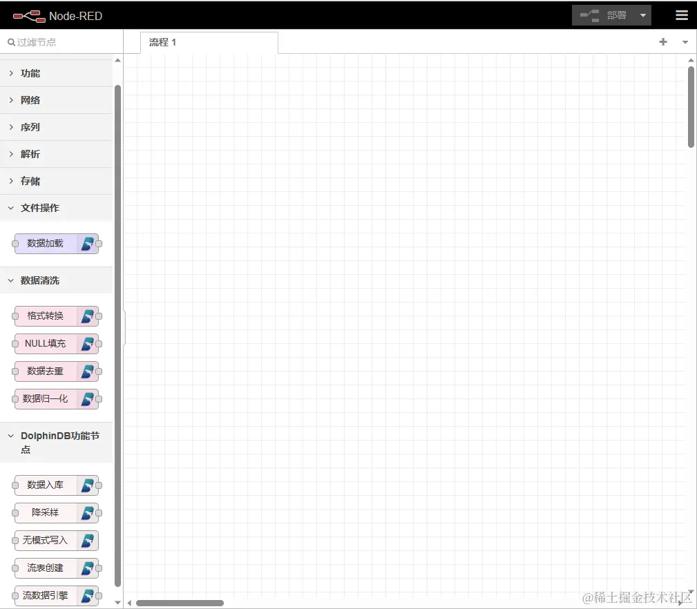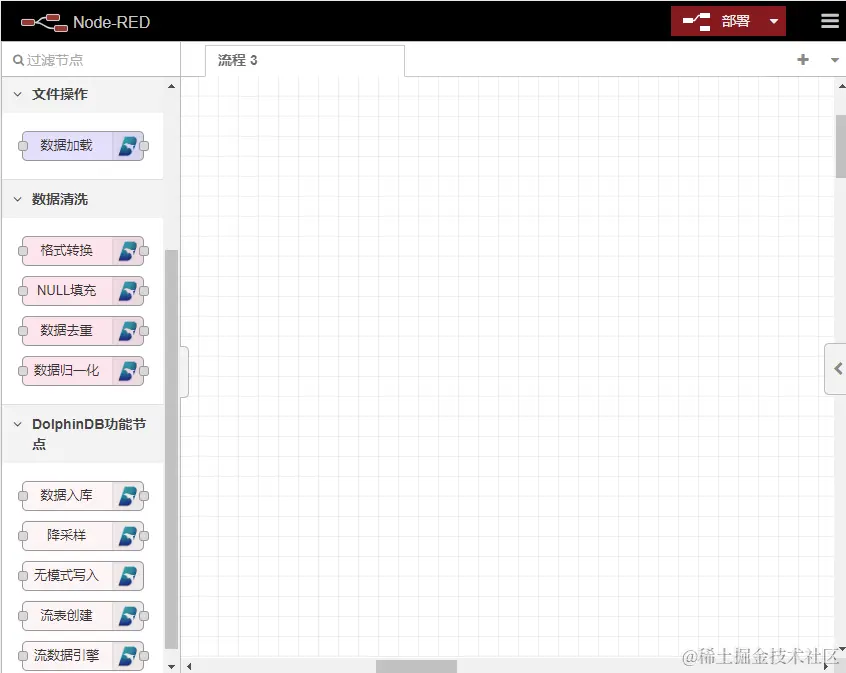 DolphinDB 低代码平台是一个基于 Node-RED 的 DolphinDB 功能可视化平台。具有强大的可扩展性,为用户提供了开发自定义功能节点的可能性。用户可以根据自身需求开发适合自己业务场景的功能节点,从而进一步增强平台的功能和适应性。
