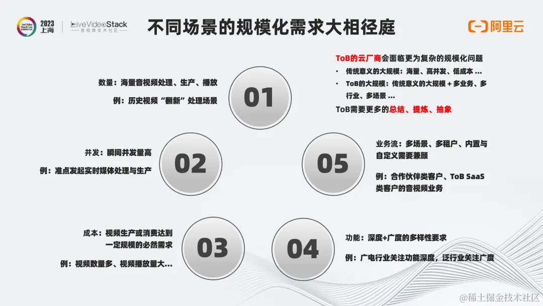接下来介绍关于媒体服务的进阶技术,阿里云ToB业务当前面临的最大挑战是不同场景、不同客户带来的规模化技术挑战。