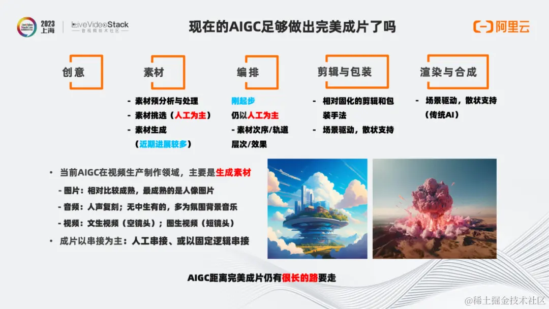 总体上,当前AIGC在视频生产制作领域主要是用于生成素材,成片以人工或固定逻辑串接为主,虽然其成长空间是巨大的,但此刻距离完美成片仍有很长的路要走。