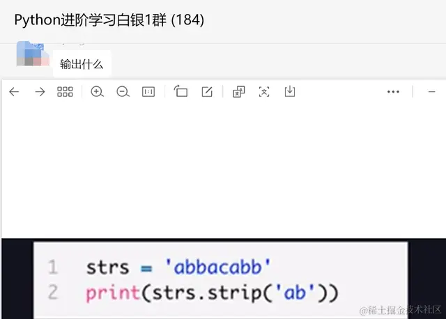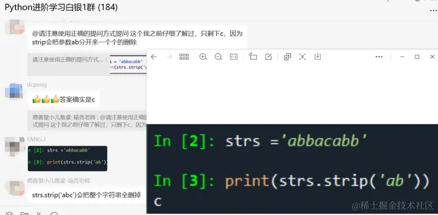 这里大家对于strip()函数理解不深刻的话,很容易犯迷糊,这里答案就是输出一个字符c。