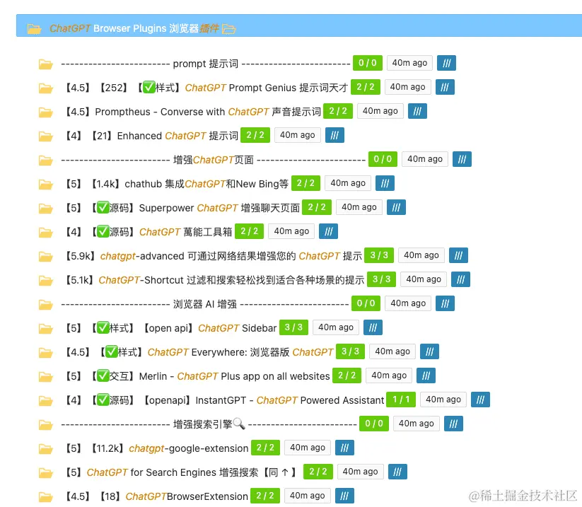这部分主要是一些ChatGPT的浏览器插件,涉及到提示词增强、对话记录、对话导出等功能,可以大大提升ChatGPT的使用体验。