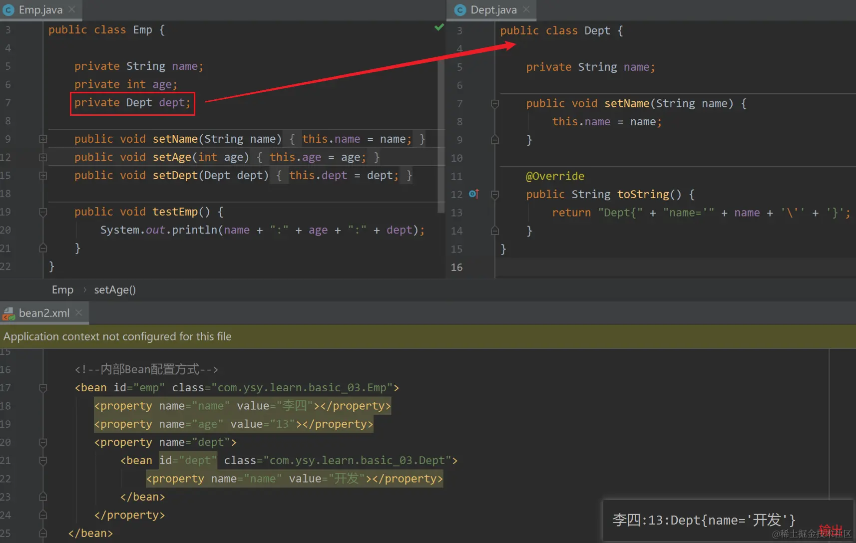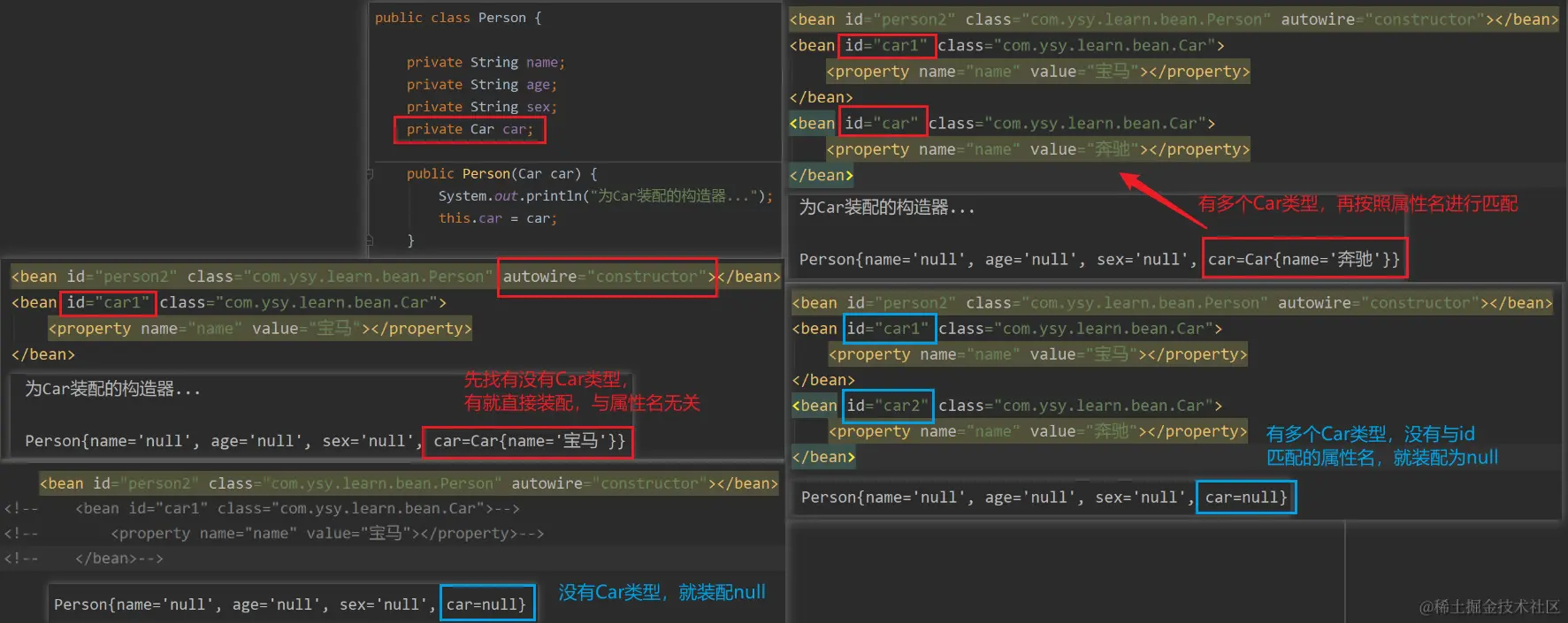 2.使用有参构造函数示例: 在使用有参构造注入属性的时候,Spring就不是默认使用无参构造函数创建对象了,而是使用有参构造函数创建对象