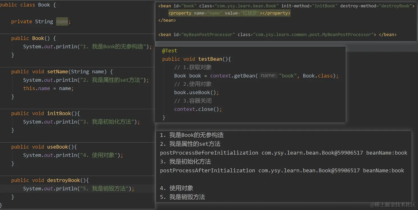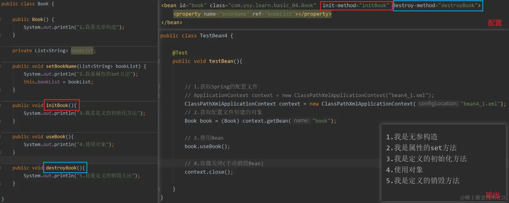 - 调用Bean的初始化方法(需要在Spring配置文件中配置初始化方法)