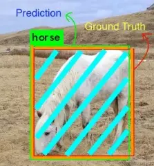 这个例子中交集区域相当大,交集覆盖的是边界框重合区域(蓝绿色区域),并集覆盖的是橙色和蓝绿色的所有区域。