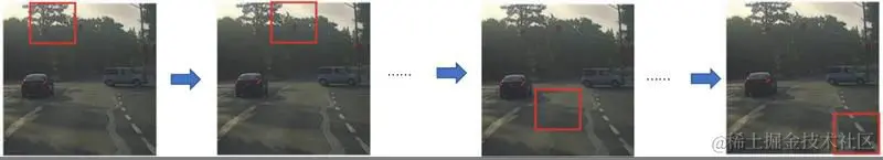 对于Two Stage的算法,RP的产生是一个很耗时的过程:通过一个窗口从左到右,从上到下的在整张图片上以一定的步长进行滑动扫描,每次滑动的时候对当前窗口执行分类计算,如果当前窗口得到较高的概率,则认为检测到了物体。过程如下图所示,这个方法也叫滑动窗口。