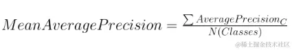 平均精确度均值 = 所有类别的平均精度值之和/所有类别的数目。