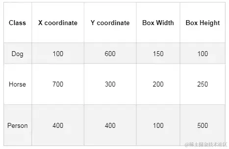 以及3组解释性数据,包含分类结果、边框的坐标数据、边框的宽和高。如下图所示(假设图中的坐标数据和宽高数据单位都是像素):