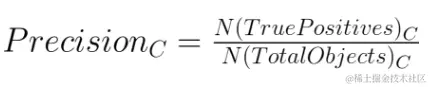 比如,给定的图片中类别C的精确率=图片中类别C的真正类数量/图片中类别 C 所有目标的数量。