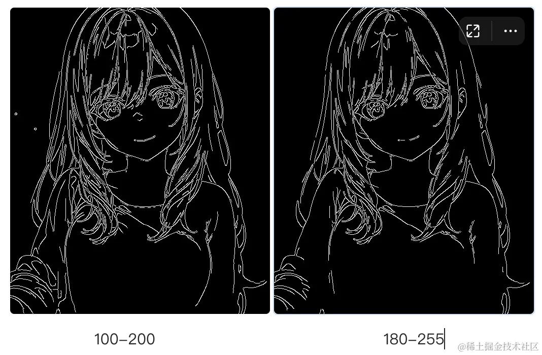 以canny为例,通过调整阈值可以控制边缘图中保留细节的多少。