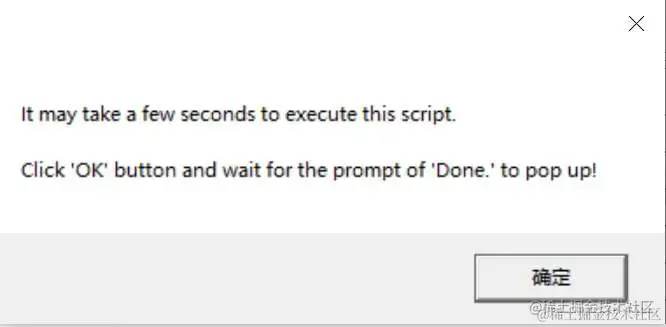 会提示安装补丁需要等待数秒。点击【确定】按钮后,过程大概 10 - 30 秒,如看到弹框提示 Done 时,表示激活成功: