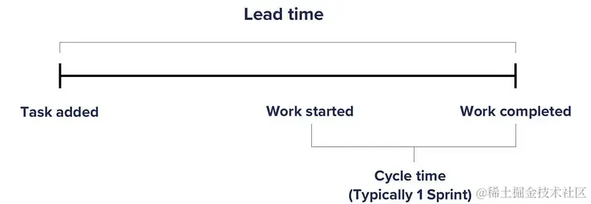 前置时间表示从创建工作项(Story, Feature或Epic)到完成所花费的时间。这是一个很好的衡量团队效率的标准。交付时间越短,团队将想法或未完成的请求转化为可工作软件的效率就越高。