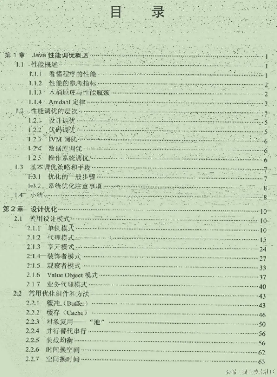 Java程序性能优化理论联合实际,使用丰富的示例让程序员更加易懂,容易使用,深入剖析软件设计层面、代码层面、JVM虚拟机层面,是一份不可多得的好文档。