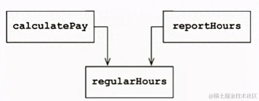 这时候,负责这项修改的程序员会注意到calculate Pay()函数调用了 regularHours()函数,但可能不会注意到该函数会同时被reportHours()调用。
