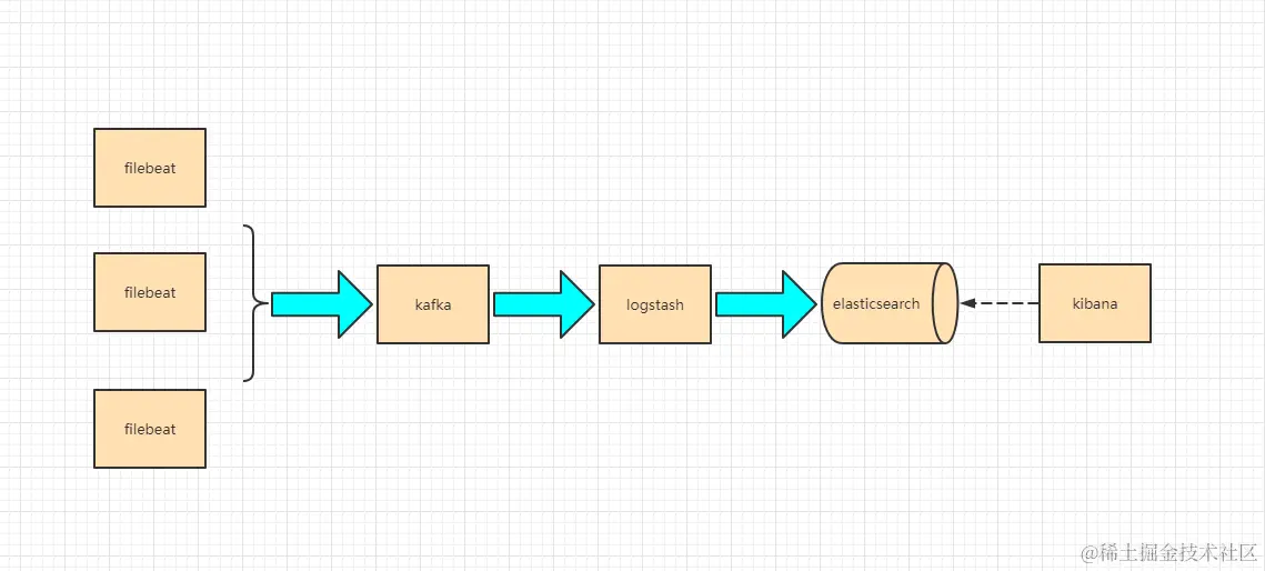 ELK是ElasticSearch+LogStash+Kibana的缩写,是现代微服务架构流行的分布式日志解决方案,旨在大规模服务的日志集中管理查看,极大的为微服务开发人员提供了排查生产环境的便利。如果规模较小的日志量,直接使用ElasticSearch、Logstash、Kibana是可以满足其应用的,但是对于日志量较大的中大规模服务集群来说,这3个中间会引入Filebeat、Kafka、Zookpeer三个中间来大幅度提升采集性能、可靠性、可扩展性。目前来说,大部分公司使用的解决方案架构如下图: