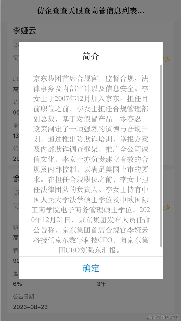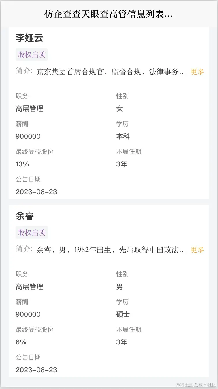 本文将介绍一款组件:前端Vue仿企查查天眼查高管信息列表组件,附完整代码下载地址::ext.dcloud.net.cn/plugin?id=1…