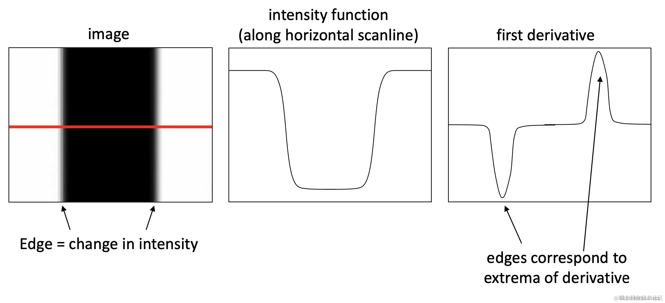 - 图像的边缘可以通过查找图像中强度或梯度变化大的地方来检测。