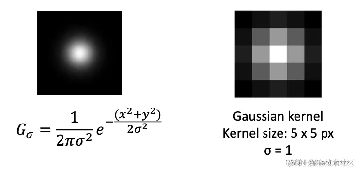 Gaussian 滤波器:一种线性低通滤波器,能够有效的抑制噪声,平滑图像。在高斯卷积核中,离中心像素越远的像素拥有较低的权重,而离中心像素越近的像素拥有较高的权重。这意味着高斯卷积核在卷积操作中更注重中心像素的影响,而较远的像素影响较小。