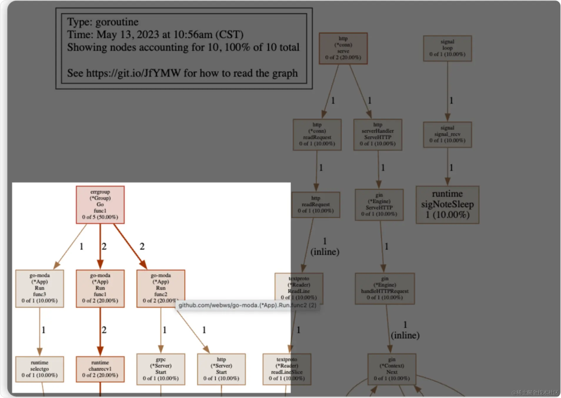 go tool pprof http://localhost:8081/debug/pprof/goroutine