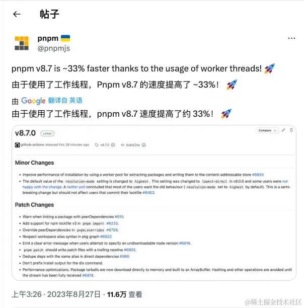 4. pnpm v8.7.0 发布,提升安装速度 33%