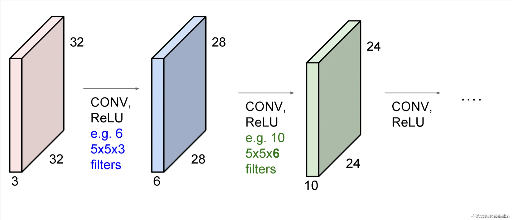 通过6个不同的卷积核处理图像后,得到了6个不同的激活图。然后,这些激活图被堆叠或组合成一个具有6个通道的新图像,这个新图像将被传递给网络的下一层进行进一步处理。