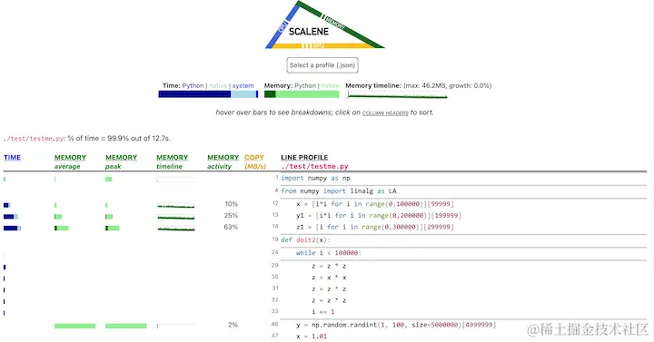- Scalene 的速度非常快,几乎没有额外的性能开销。