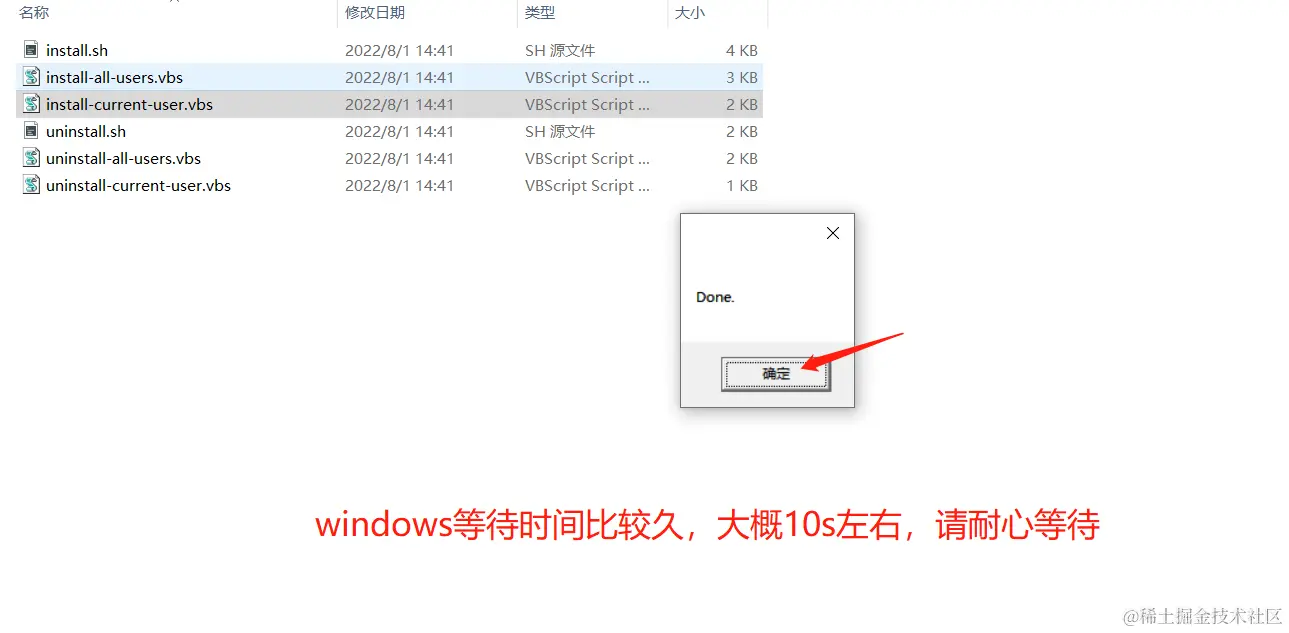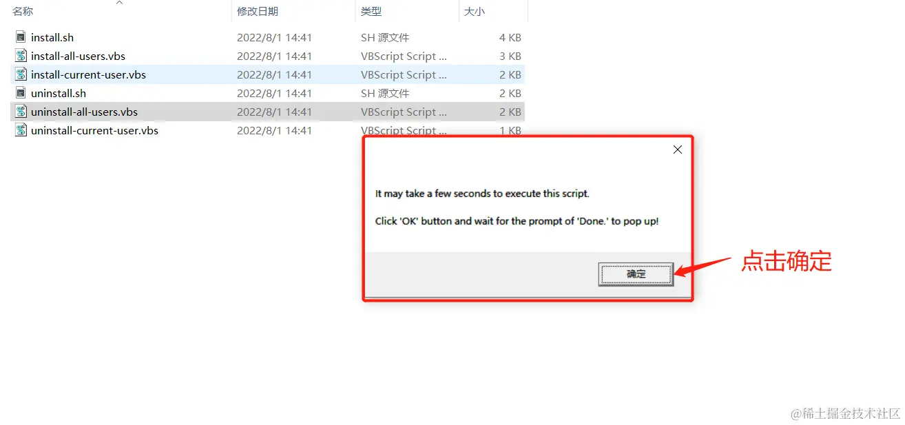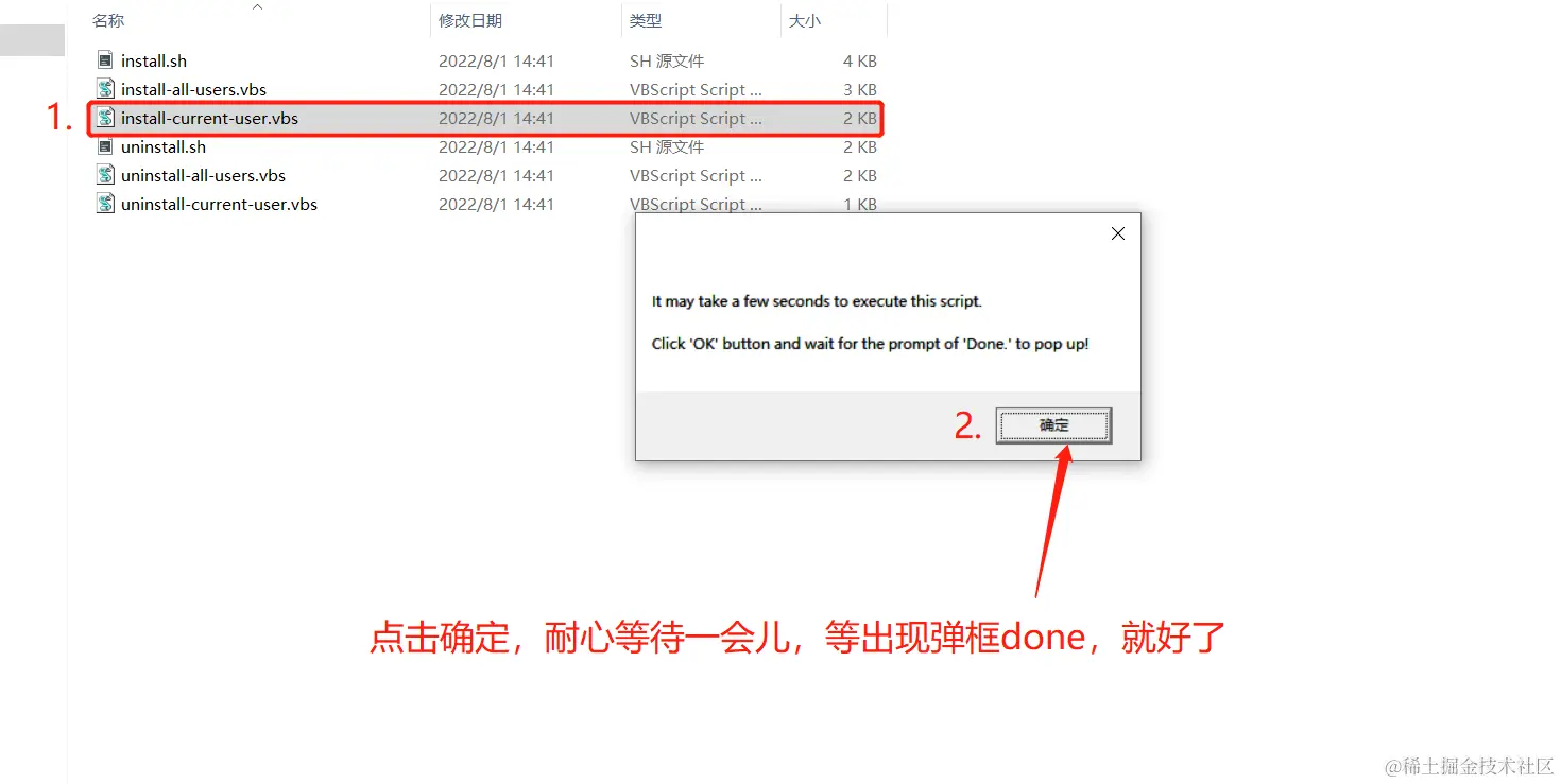 - 然后再执行install-current-user.vbs,直接双击打开即可