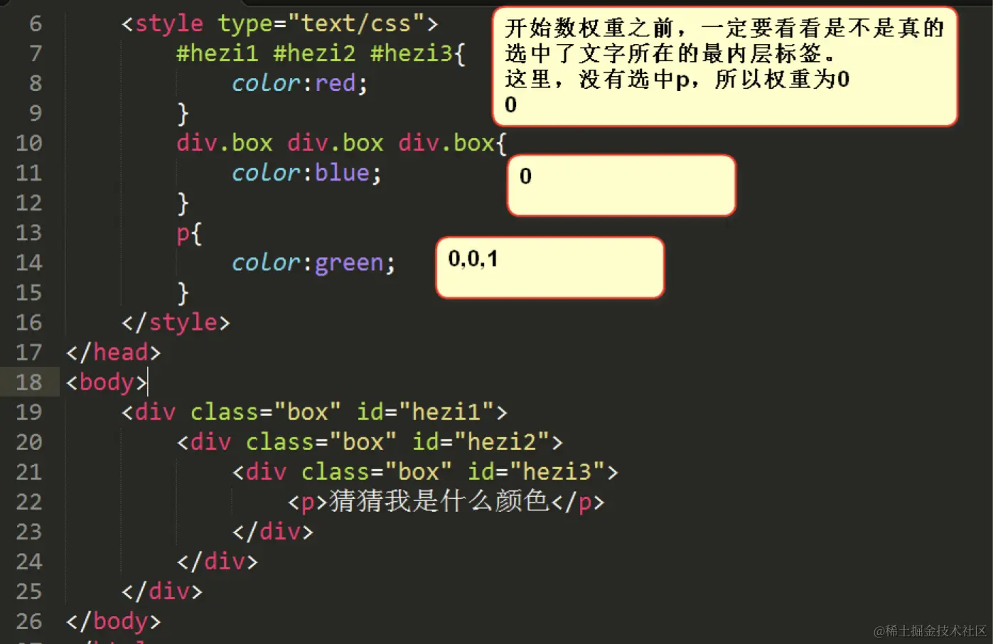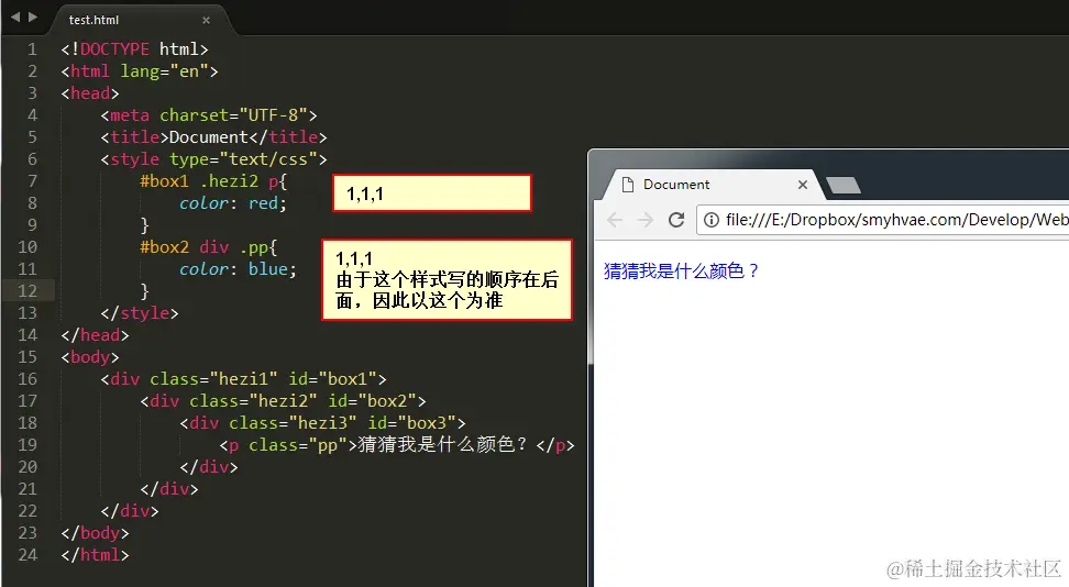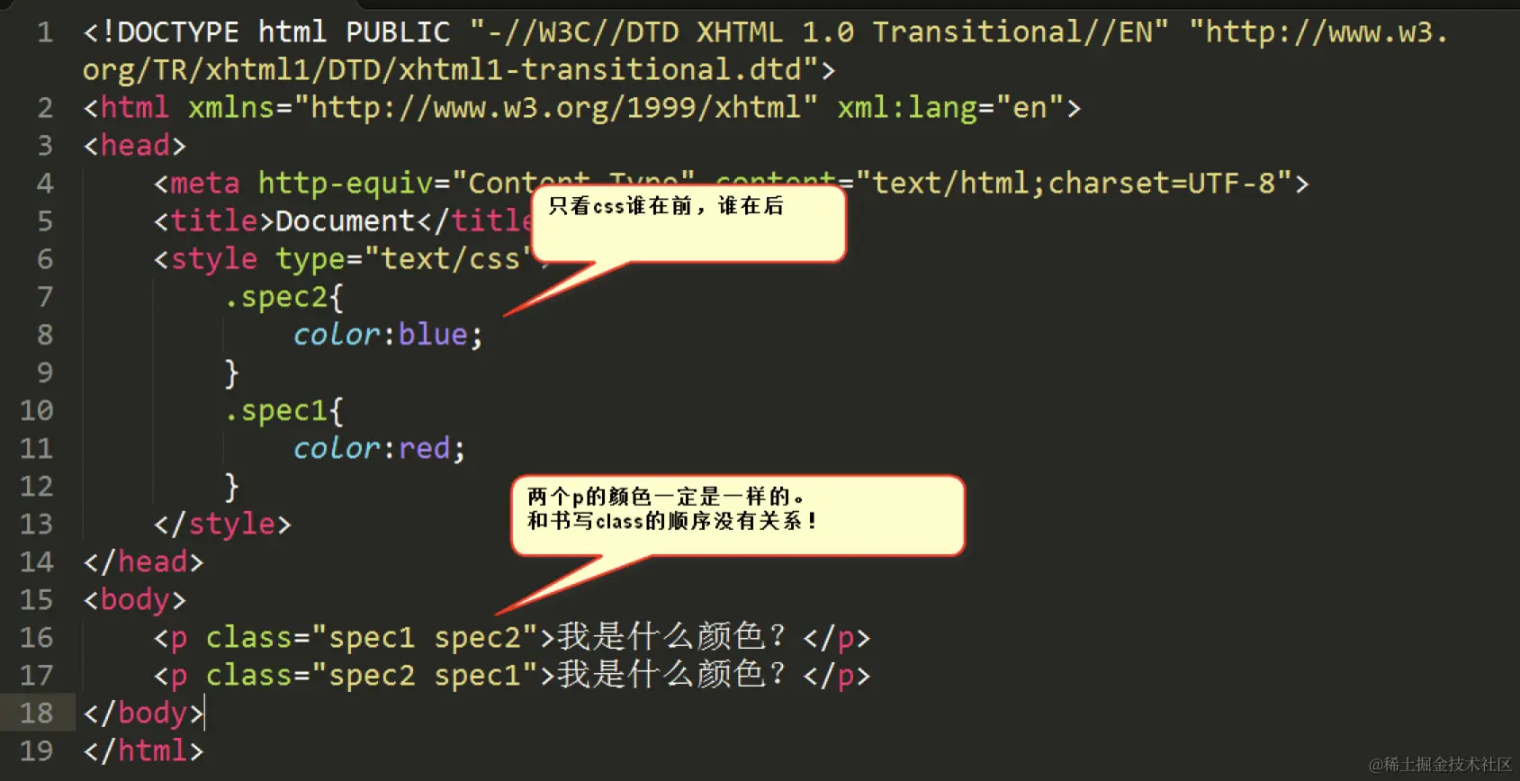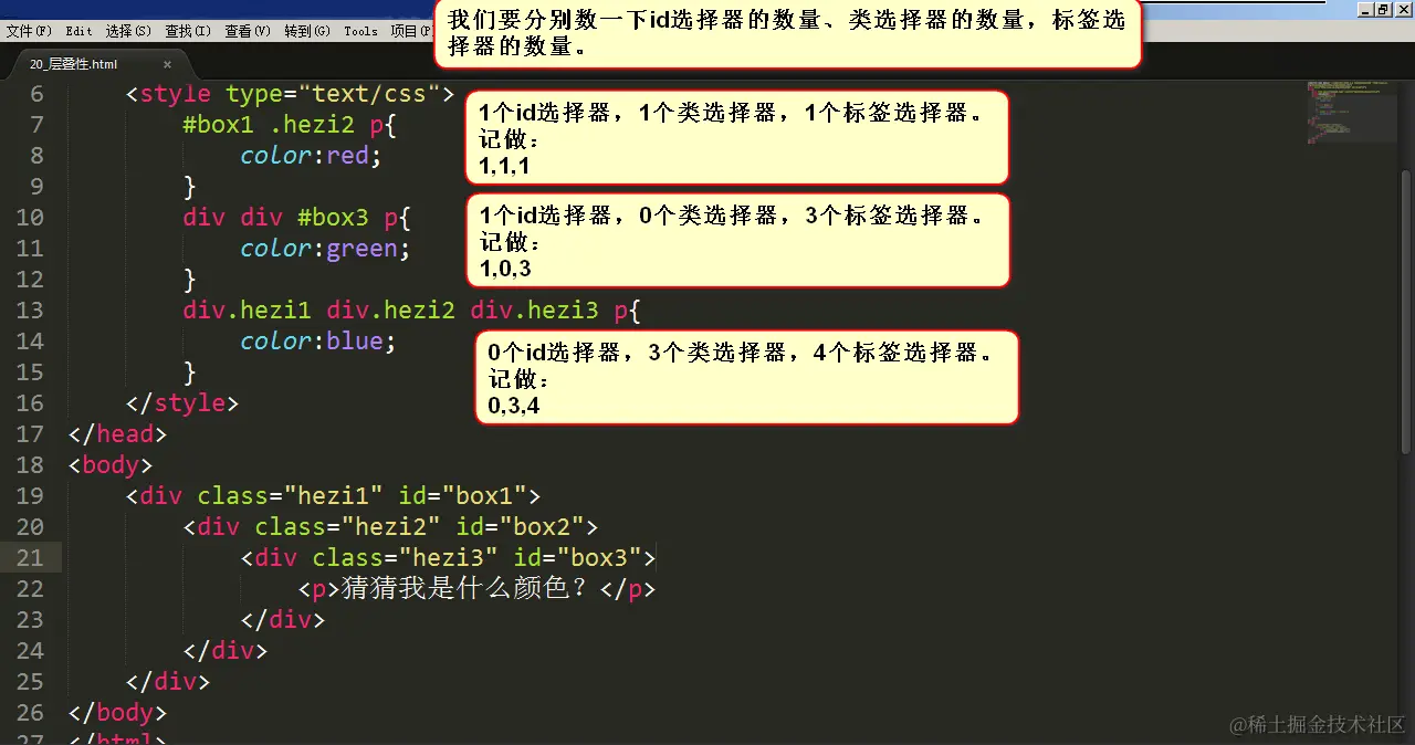 定义交集选择器的时候,两个选择器之间紧密相连。一般是以标签名开头,比如div.haha,再比如p.special。