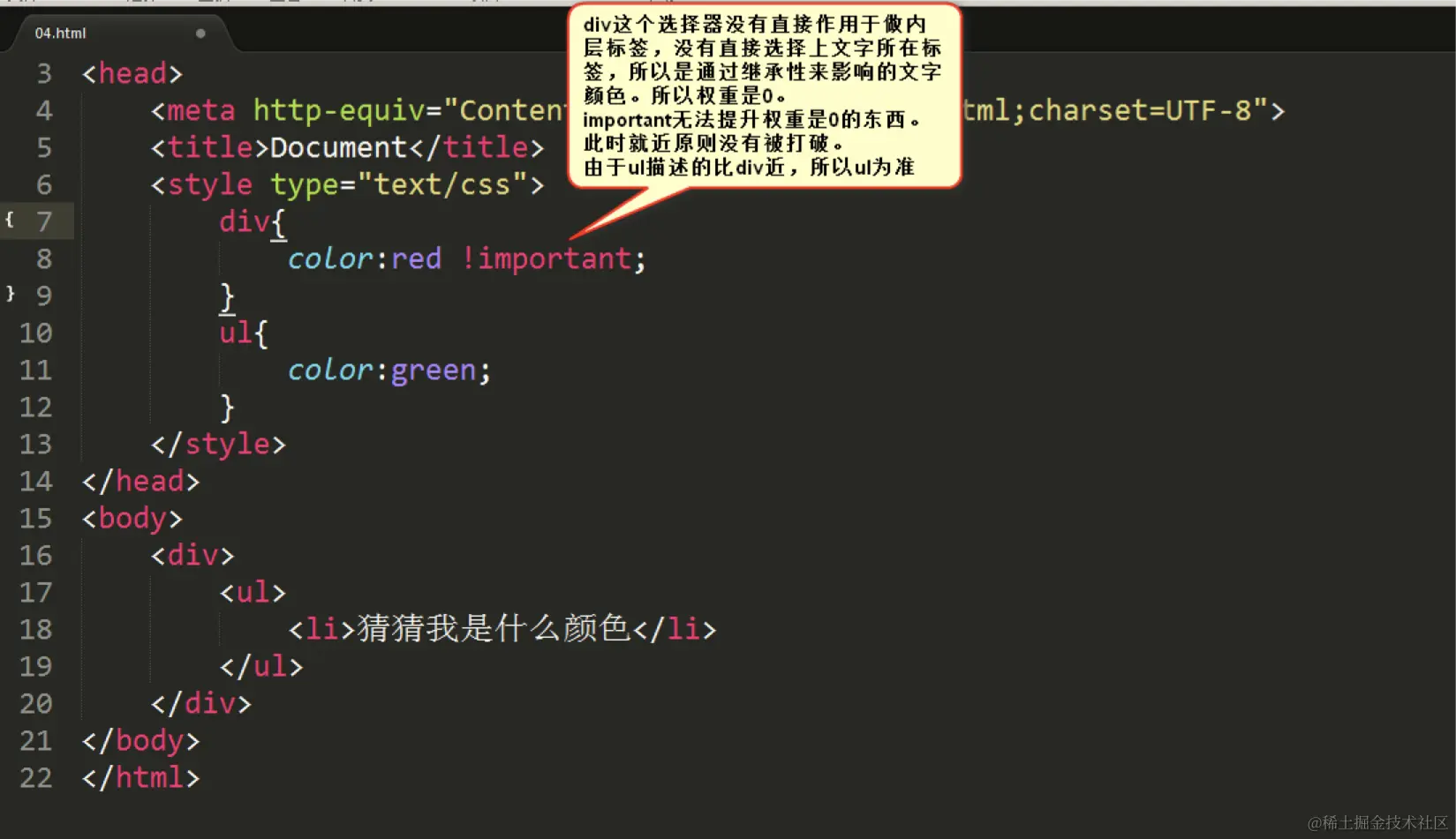 针对某一个特定的标签来使用,只能使用一次。css 中的 ID 选择器以”#”来定义。