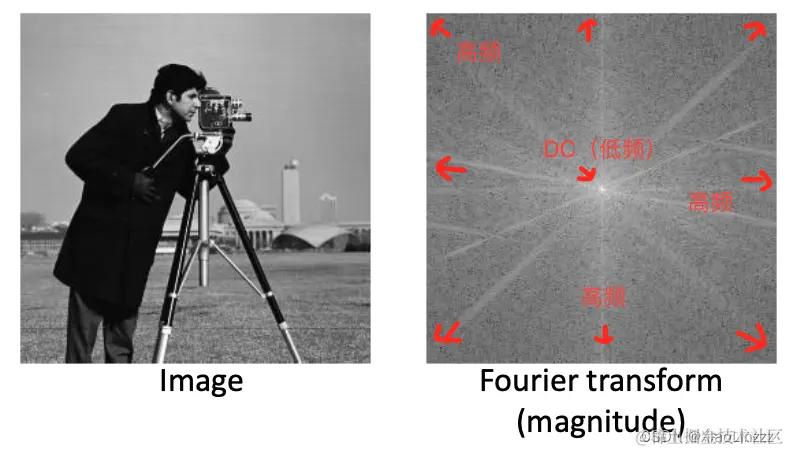 因为将中心移到中间后,中间的亮点是 DC(image mean),越往外频率越高。