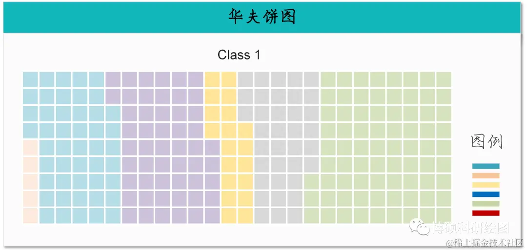 简介:华夫饼图(Waffle Chart)是一种用于可视化分类数据的图表,它通过填充小方格或圆形来表示不同类别的比例或数量。