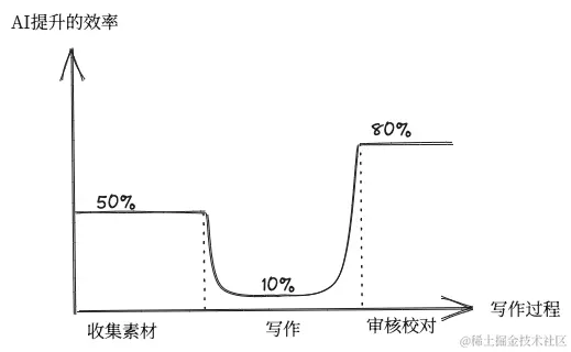 我们可以把写文章分成下面几个阶段(注意,这里AI提升的效率是根据我的个人经验得来的,仅供参考)。