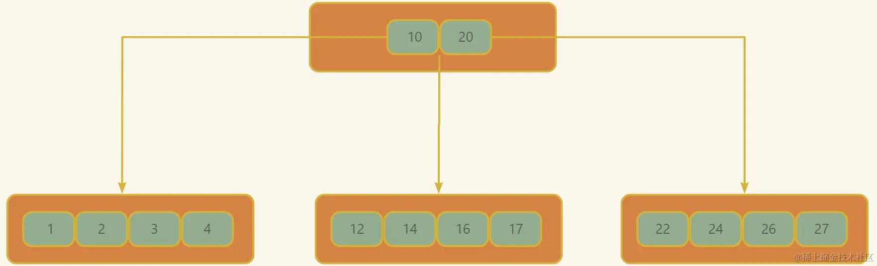 - 一个包含K个key的节点,应该有K+1个子节点(K个key会划分出K+1个区间)