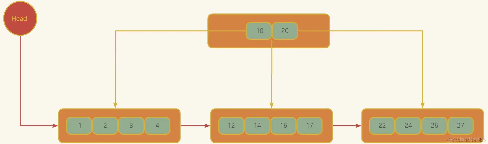 由于在B-Tree中,所有的叶子节点从左到右本来就是按照顺序排列的,所以在B+Tree中就将叶子节点都连接起来形成一个链表。当需要区间查找的时候,只需要通过搜索左区间元素,然后依次遍历就可以得到区间查找的元素。