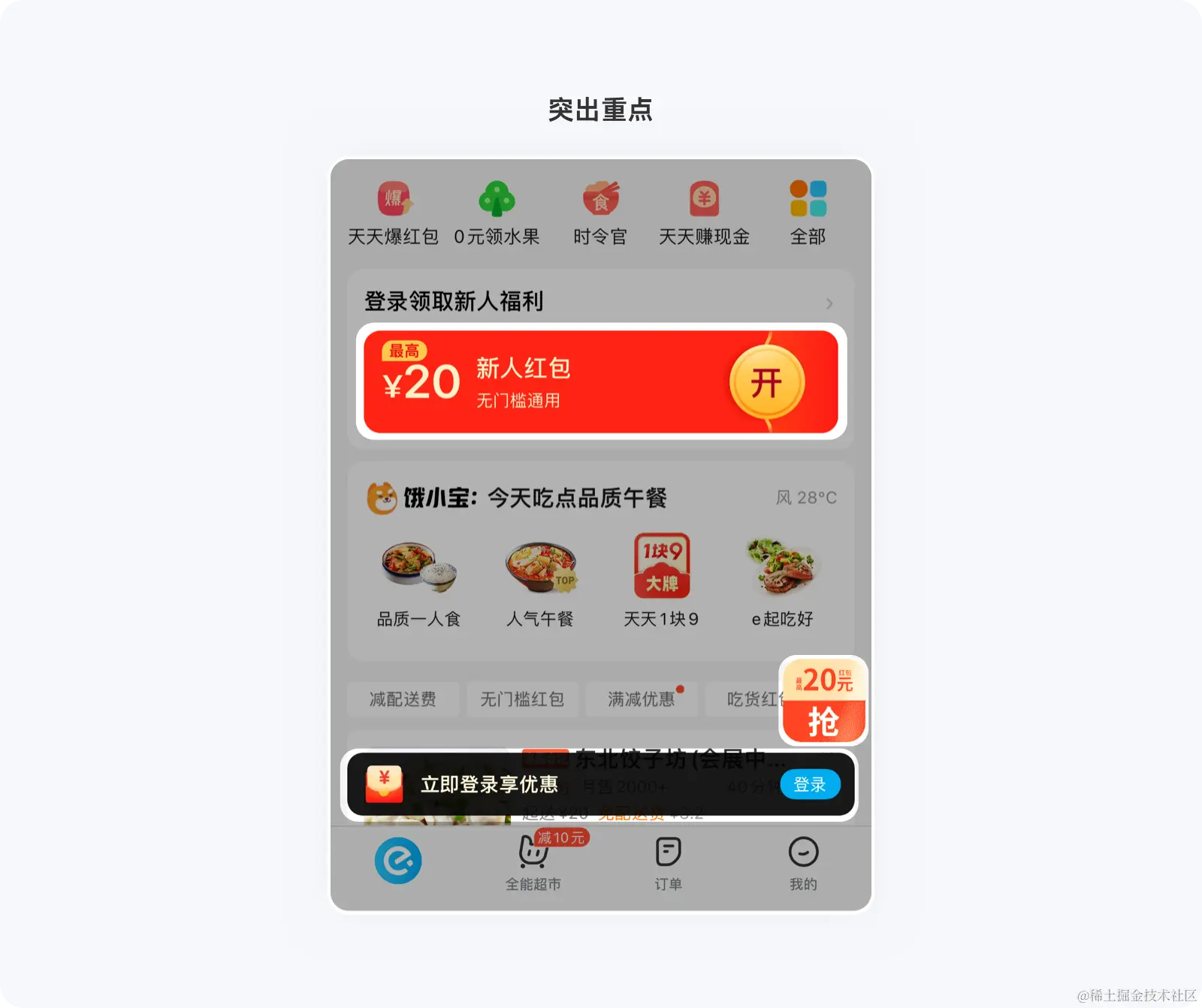 卡片式设计能很好的通过边界衬托出内容的整体性,特别是在电商类产品中的首页头部、瓷片区、营销引流区将其应用到了极致,即便在卡片数量较多的情况下,用户依然能清晰的感知到内容的归属层级以及重要信息。