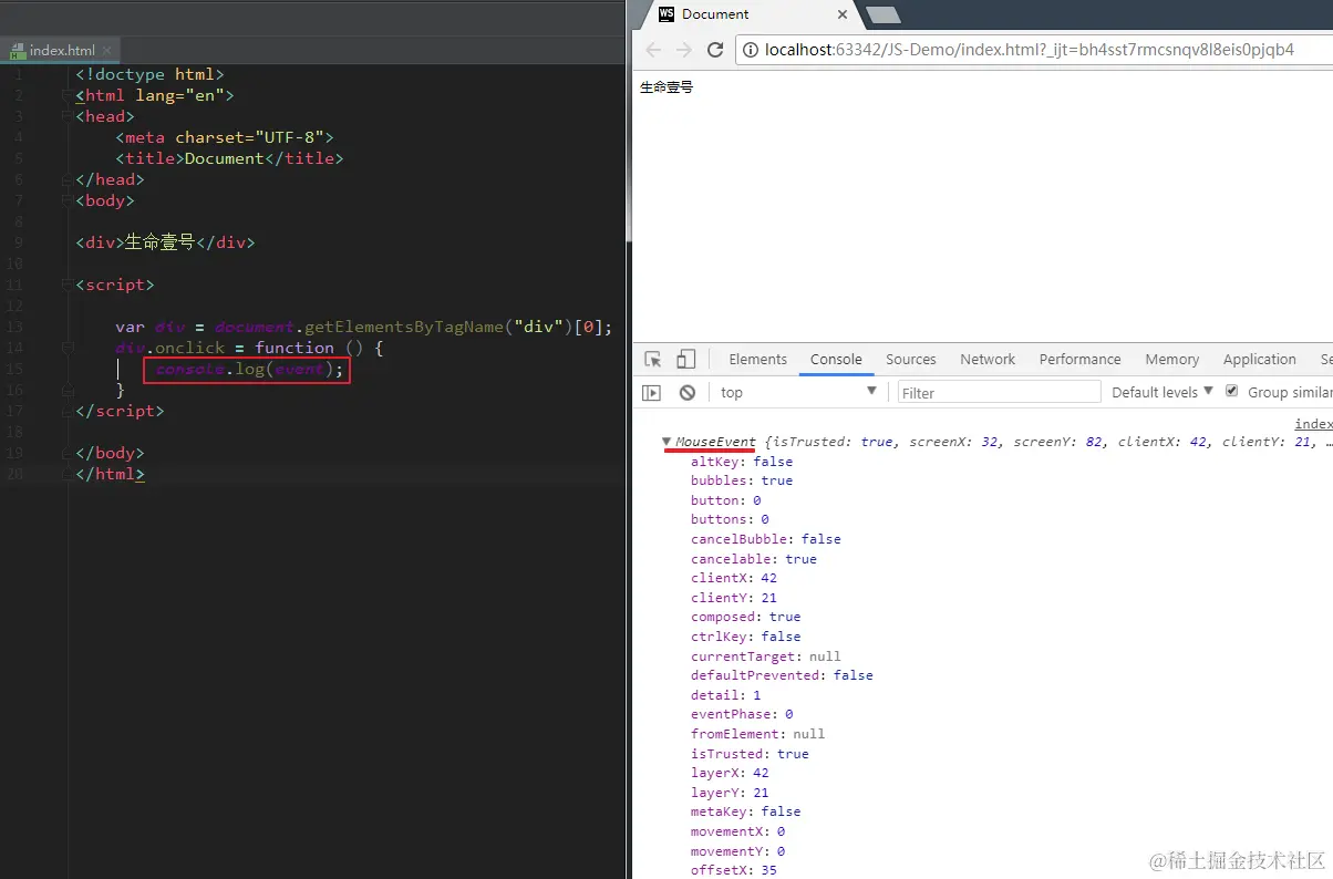 console.log(event.bubbles); //打印结果:true。说明 onclick 事件是可以冒泡的