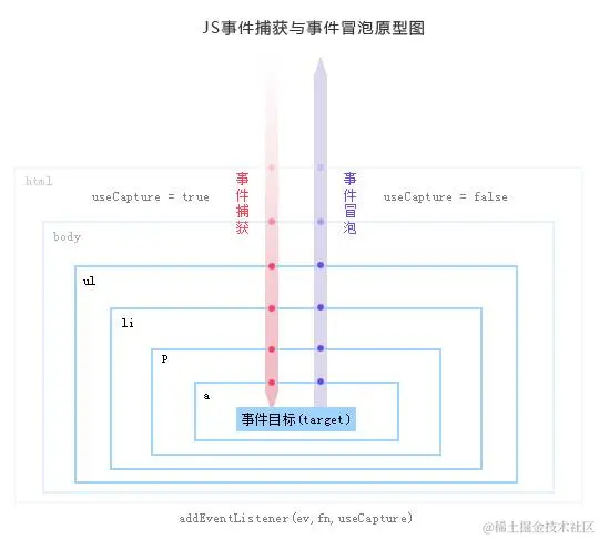 当然,上面的代码中,我们用 addEventListener 这种 DOM2 的写法也是可以的,但是第三个参数要写 false,或者不写。