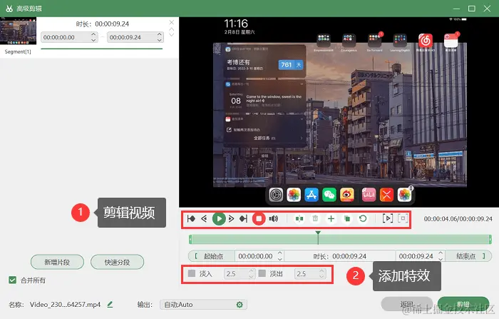 第3步:点击 “开始录制” 按钮,录制平板页面,录制结束后,可以保存到指定位置,也可以进入 “高级剪辑” 页面进行更多操作。