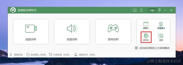第1步:在官网下载并安装数据蛙录屏软件,双击打开它进入到主页面,在这里我们选择 “录手机” 。