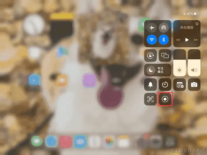 第1步:从平板(带有 Home 按钮的)底部向上滑动以打开控制中心。在控制中心中,您可以看到一个圆形按钮,其中包含一个实心圆内嵌在一个圆圈中的白色图标,这是录屏按钮。