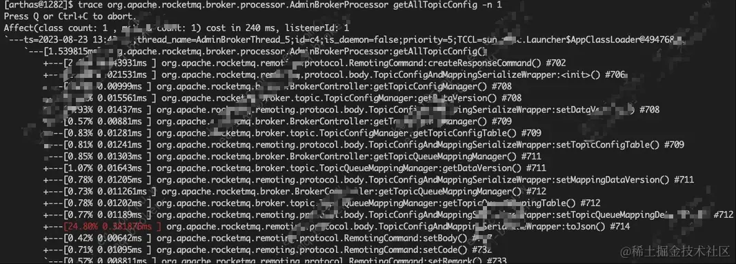 为了定位到到底是哪里导致的超时,使用了arthas进行了方法耗时追踪