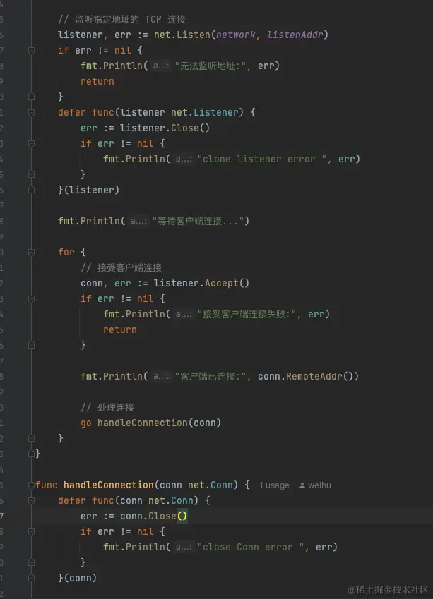 为了更加严谨快速验证,打算用goland写一个client和server进行tcp连接,然后仅发送心跳