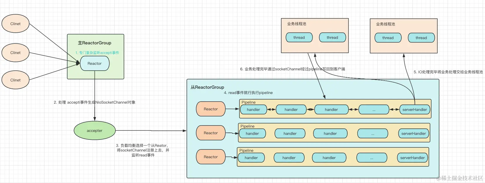 这里可以看到workGroup是多个,实际在wrokGroup还有再分多个线程池去处理不同的业务逻辑