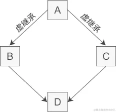类 A 派生出类 B 和类 C,类 D 继承自类 B 和类 C,这个时候类 A 中的成员变量和成员函数继承到类 D 中变成了两份,一份来自 A-->B-->D 这条路径,另一份来自 A-->C-->D 这条路径。