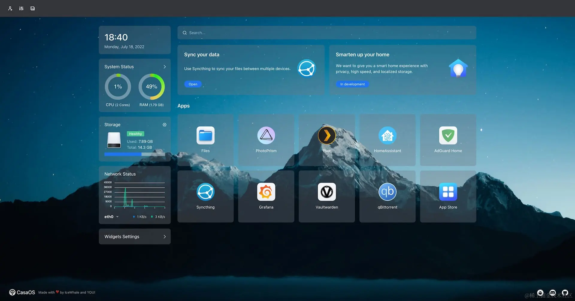 CasaOS 将个人为作为个人数据中心,提供低成本数据协作服务。分布在各地的个人服务器甚至可以组成一个分布式协作网络,它还能控制和连接所有智能设备,提供跨生态的本地智能服务。