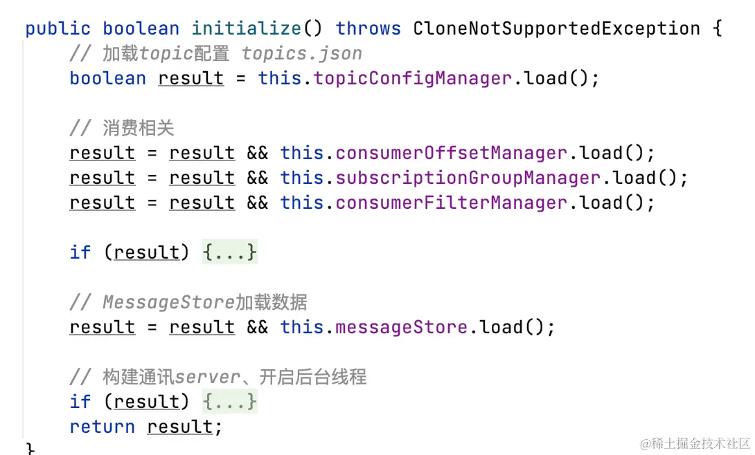 - MessageStore#load除了加载磁盘文件外,会执行一些恢复逻辑;
