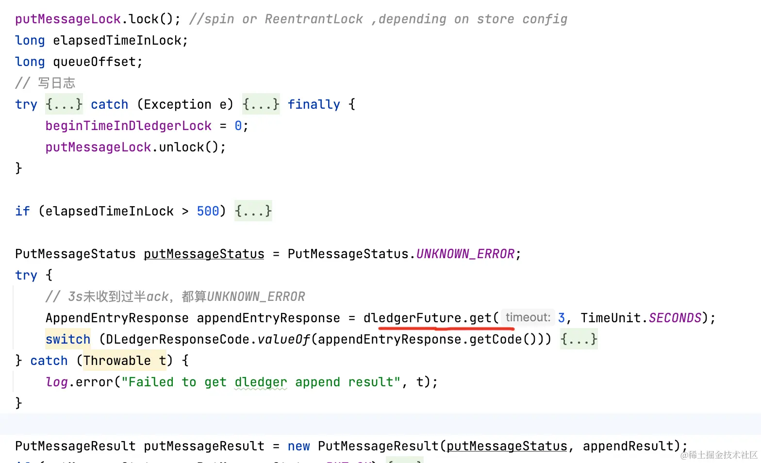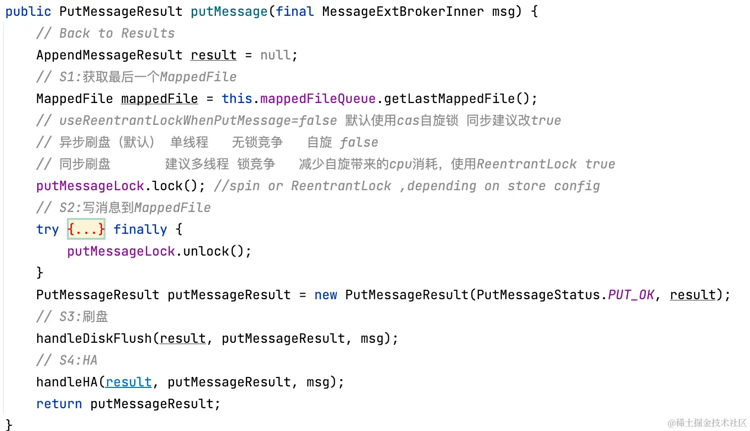 - 获取putMessageLock锁(自旋或ReentrantLock);