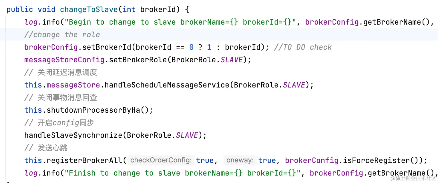 raft follower会成为slave,关闭事务消息回查和延迟消息调度,开启config目录同步。
